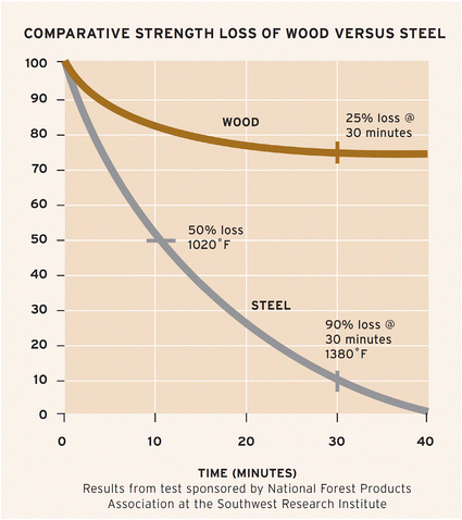3. 木结构耐火性较强:虽然木材较钢砖更易燃,但木材的耐燃烧性高。实木燃烧的所形成的碳化层会减火灾对木头内部的破坏速度,这也保证了木质框架的力学结构不会迅速被破坏掉。另外,现代木结构建筑往往还会采用特殊处理过的建筑木材,如一些工程类的木质材料,经过阻燃与防火处理,防火性能比原木还要高。