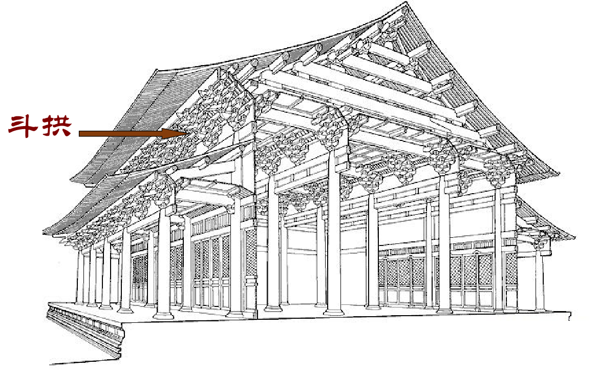 梁思成曾经说:“中国各代建筑不同之特征,在斗拱之构造,大小,及权衡上最为显著”。
